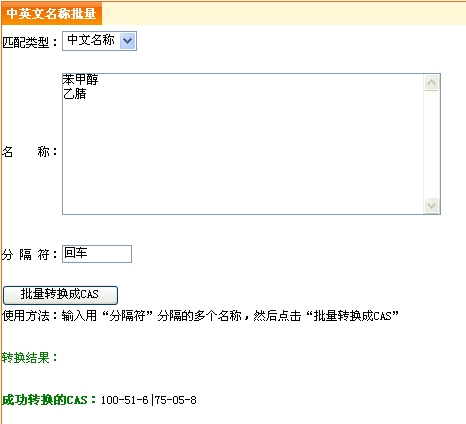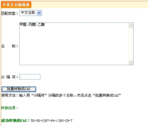 中英文名稱批量轉(zhuǎn)換CAS